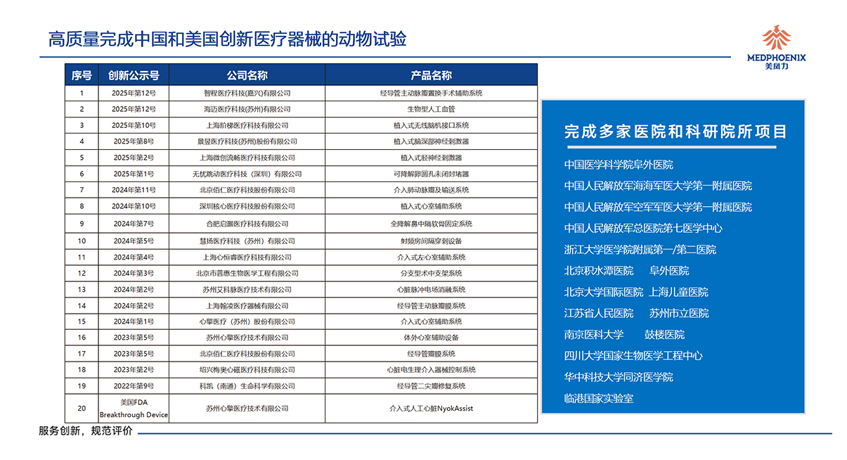 江蘇美鳳力醫(yī)療科技有限公司是由國內(nèi)知名醫(yī)生團(tuán)隊(duì) 2018年創(chuàng)辦,從醫(yī)療器械臨床前大動(dòng)物實(shí)驗(yàn)中心起步,目前已發(fā)展成創(chuàng)新醫(yī)療器械提供醫(yī)學(xué)研究、動(dòng)物試驗(yàn)、臨床試驗(yàn)和全球注冊服務(wù)的新型醫(yī)學(xué)研究組織(MRO,Medical Research Organization),助力創(chuàng)新醫(yī)療器械合規(guī)、安全、高效上市。