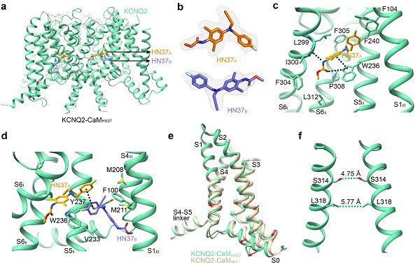 圖2. 結(jié)合HN37的KCNQ2-CaM結(jié)構(gòu)(KCNQ2-CaMHN37)