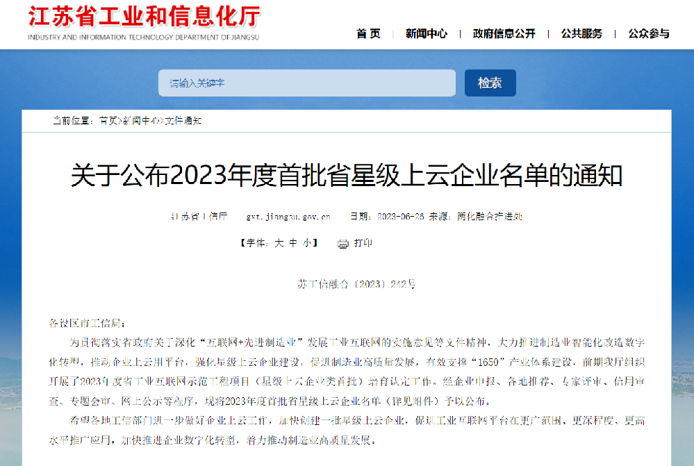 2023年度首批江蘇省星級(jí)上云企業(yè)