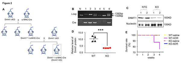Wu TT, Ma YW, Zhang X, Dong W, Gao S, Wang JZ, Zhang LF, Lu D. Myocardial tissue-specific Dnmt1 knockout in rats protects against pathological injury induced by Adriamycin. Lab Invest. 2020 Jul;100(7):974-985. doi: 10.1038/s41374-020-0402-y.)