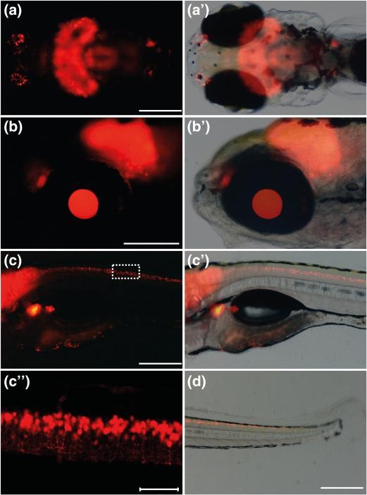 CZ417 | ihb304Tg/+ | Tg(gad1b:mCherry) | olfactory pit, optic tectum, medulla oblong, eye, spinal cord |