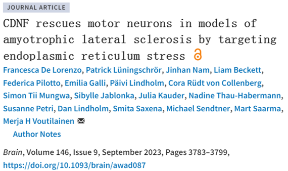 這些作者研究了一種名為腦多巴胺神經(jīng)營養(yǎng)因子CDNF的蛋白在多種ALS 細(xì)胞和動(dòng)物模型中的治療效果。