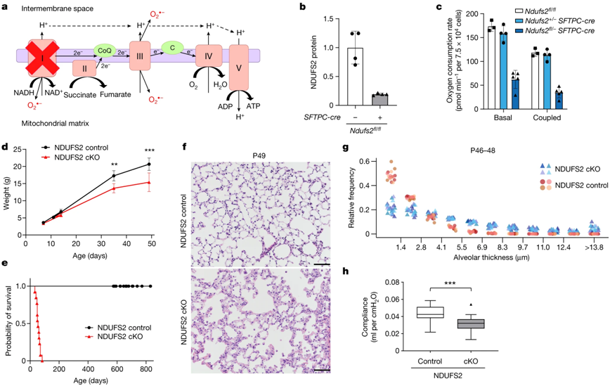 肺泡上皮細(xì)胞中的線粒體復(fù)合物I是出生后肺發(fā)育所必需的。圖片來自Nature, 2023, doi:10.1038/s41586-023-06423-8。